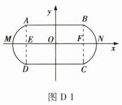 (2)如图D1所示,以该跑道中心为坐标原点,以平行$AB$的直线为$x$轴建立平面直角坐标系。由