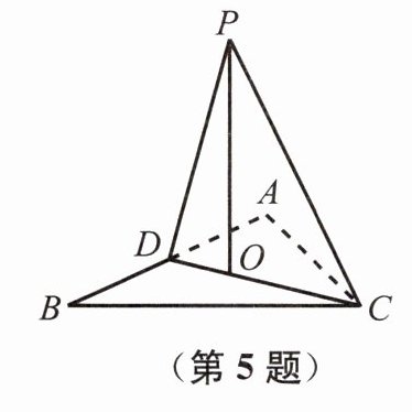 5. 如图所示,已知△ABC中,AC = BC,D为AB的中点,O为CD上一点,PO⊥平面ABC,求证:AB⊥PC.