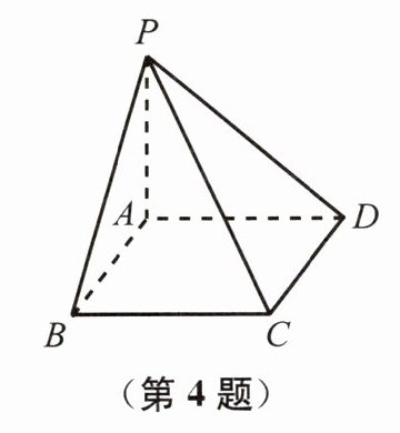4. 如图所示,已知四棱锥P - ABCD的底面ABCD是平行四边形,且PA⊥底面ABCD,如果BC⊥PB,求证:ABCD是矩形.