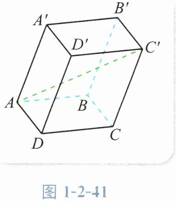 例1 如图1−2−41所示,已知ABCD - A'B'C'D'是平行六面体,AD = 3,AB = 4,AA' = 5,∠BAD = 90°,∠BAA' = ∠DAA' = 60°,求AC'的长.