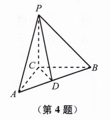 ④ 如图所示三棱锥P - ABC中,已知AC⊥BC,且CD⊥AB,PC⊥平面ABC,分别写出图中所有: