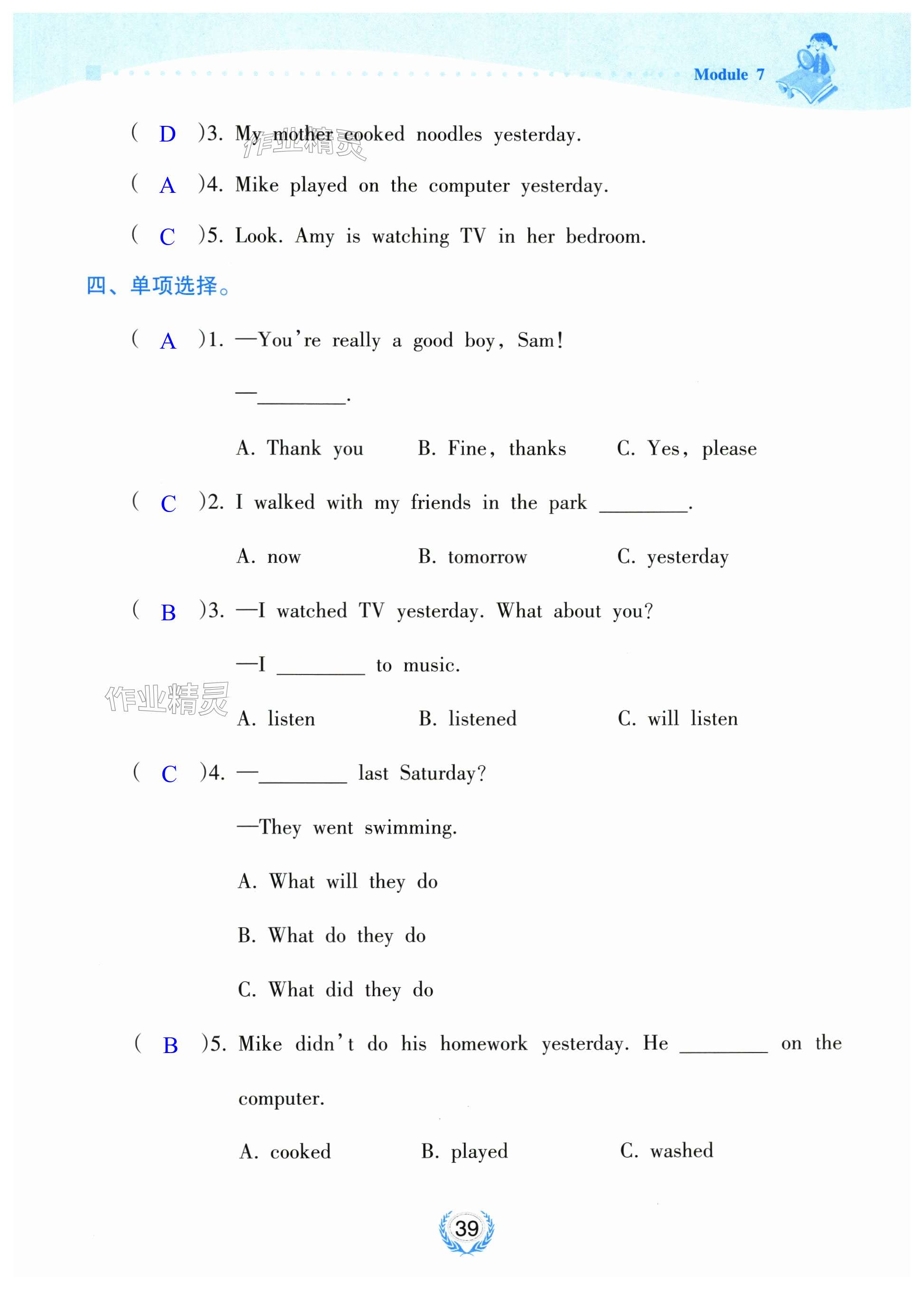 注:目前有些书本章节名称可能整理的还不是很完善,但都是按照顺序排列的,请同学们按照顺序仔细查找。练习册 2025年金椰风新课程同步练四年级英语下册外研版 答案主要是用来给同学们做完题方便对答案用的,请勿直接抄袭。