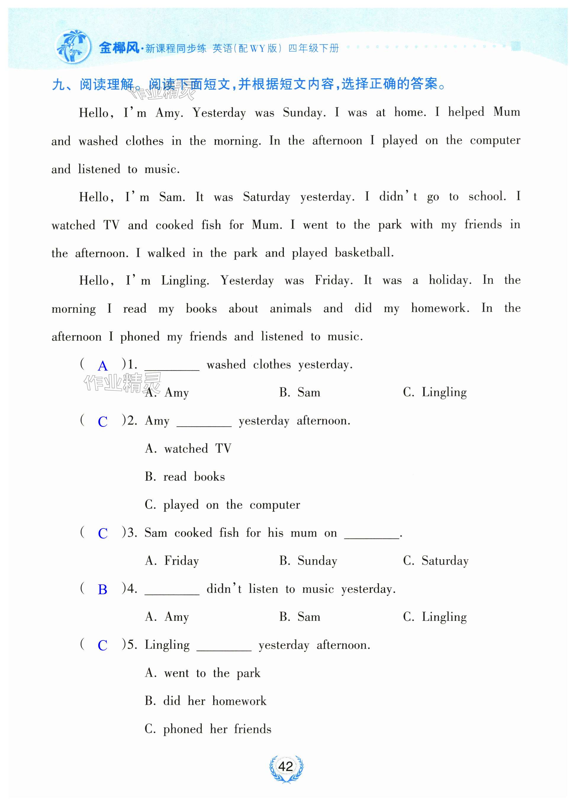 注:目前有些书本章节名称可能整理的还不是很完善,但都是按照顺序排列的,请同学们按照顺序仔细查找。练习册 2025年金椰风新课程同步练四年级英语下册外研版 答案主要是用来给同学们做完题方便对答案用的,请勿直接抄袭。