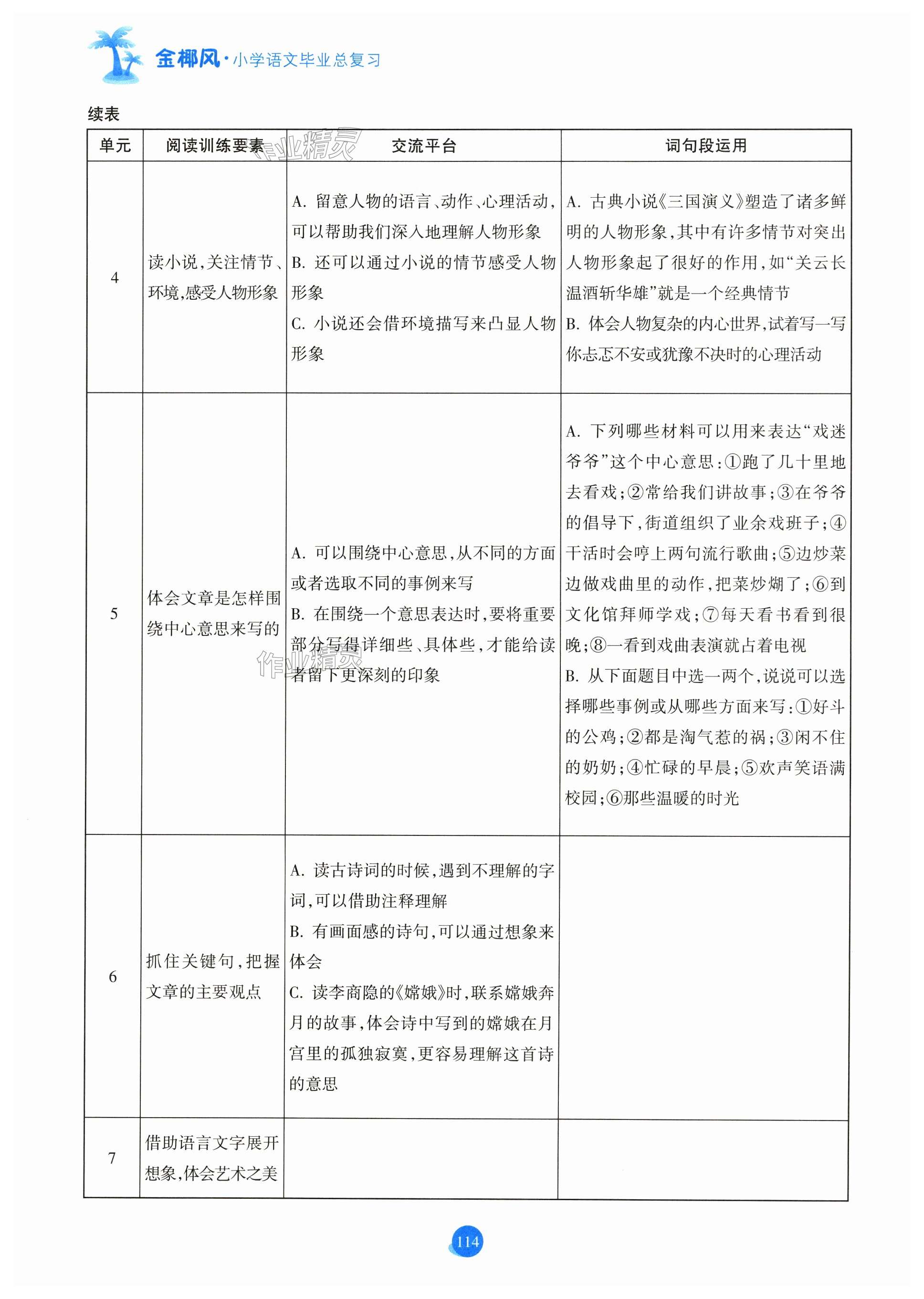 注:目前有些书本章节名称可能整理的还不是很完善,但都是按照顺序排列的,请同学们按照顺序仔细查找。练习册 2025年金椰风小学语文毕业总复习六年级人教版 答案主要是用来给同学们做完题方便对答案用的,请勿直接抄袭。