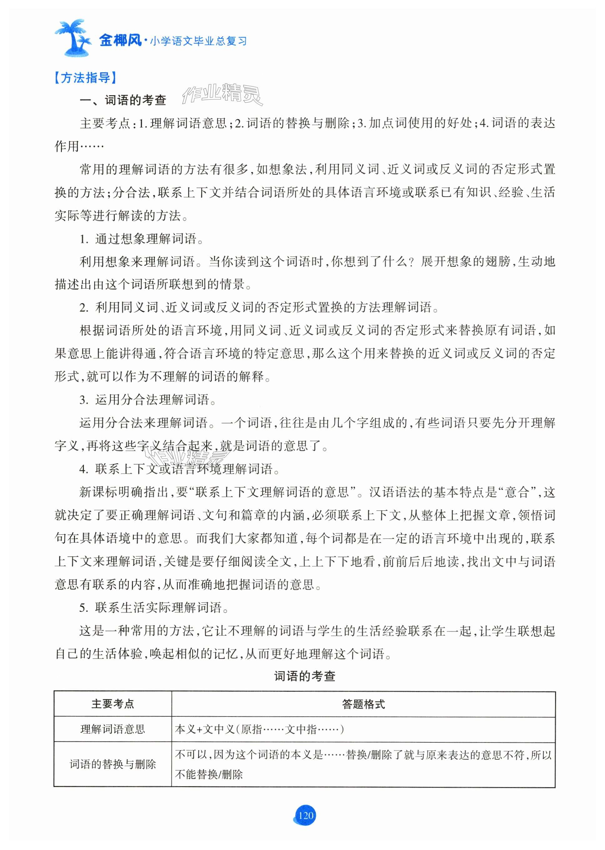 注:目前有些书本章节名称可能整理的还不是很完善,但都是按照顺序排列的,请同学们按照顺序仔细查找。练习册 2025年金椰风小学语文毕业总复习六年级人教版 答案主要是用来给同学们做完题方便对答案用的,请勿直接抄袭。