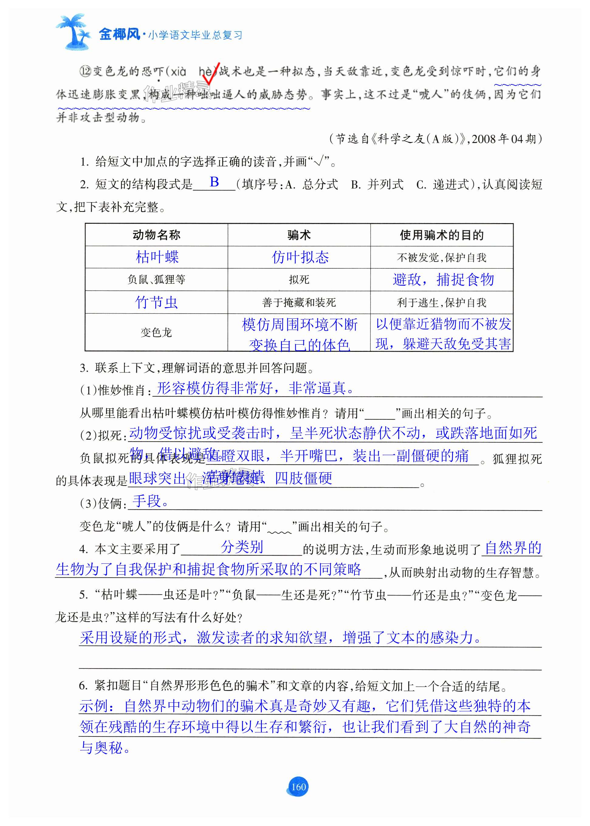注:目前有些书本章节名称可能整理的还不是很完善,但都是按照顺序排列的,请同学们按照顺序仔细查找。练习册 2025年金椰风小学语文毕业总复习六年级人教版 答案主要是用来给同学们做完题方便对答案用的,请勿直接抄袭。