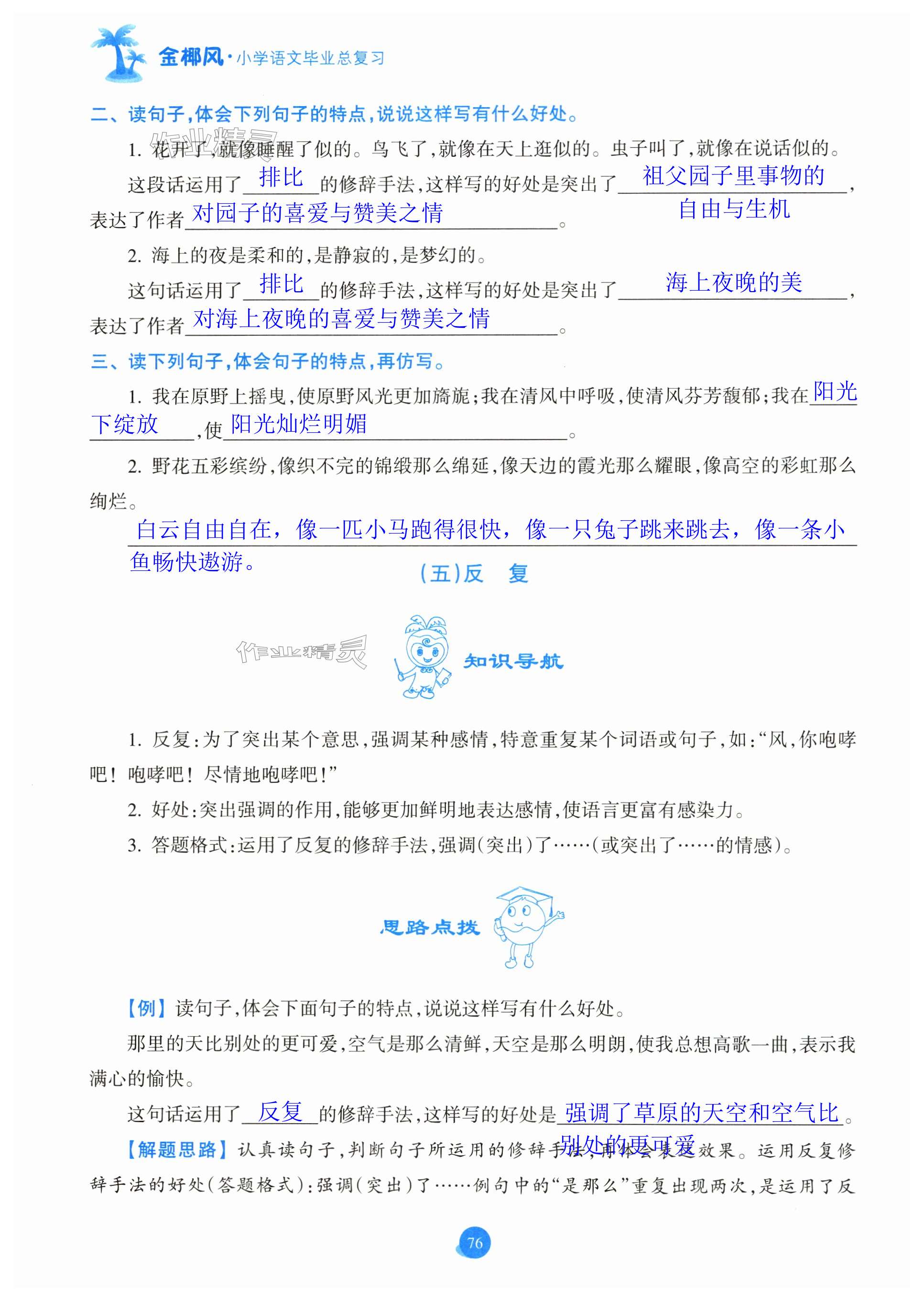 注:目前有些书本章节名称可能整理的还不是很完善,但都是按照顺序排列的,请同学们按照顺序仔细查找。练习册 2025年金椰风小学语文毕业总复习六年级人教版 答案主要是用来给同学们做完题方便对答案用的,请勿直接抄袭。