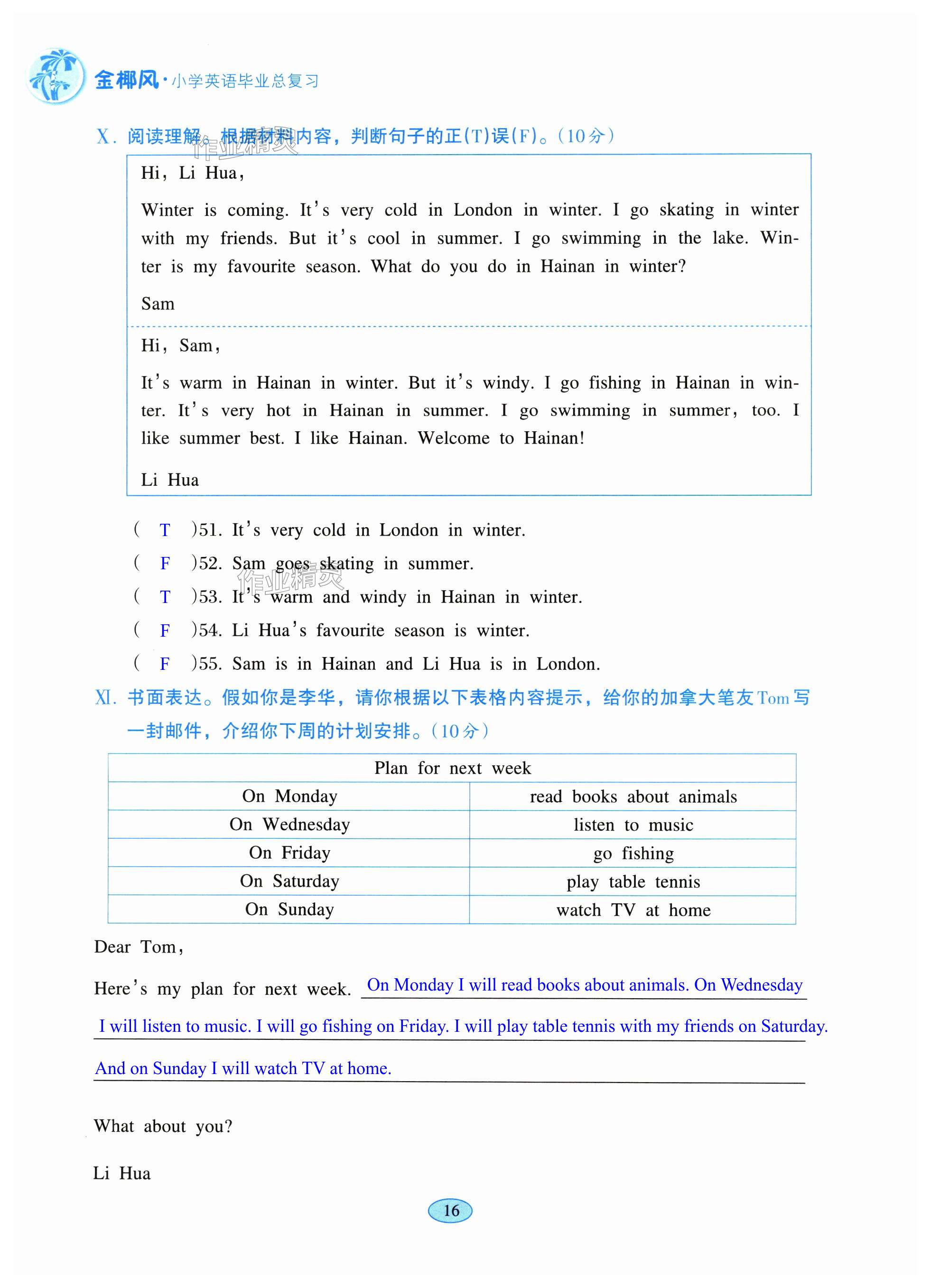 注:目前有些书本章节名称可能整理的还不是很完善,但都是按照顺序排列的,请同学们按照顺序仔细查找。练习册 2025年金椰风小学毕业总复习英语 答案主要是用来给同学们做完题方便对答案用的,请勿直接抄袭。