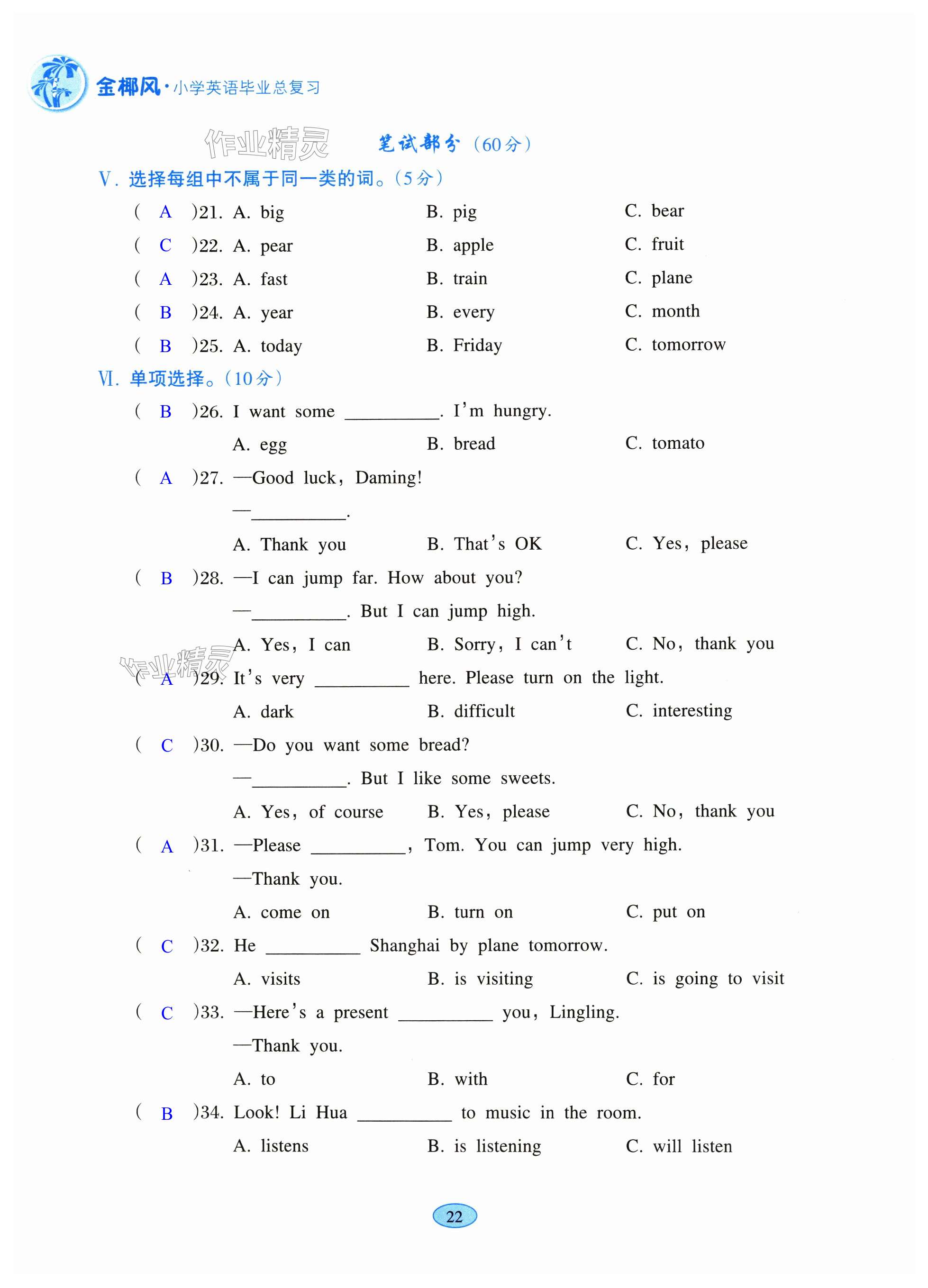 注:目前有些书本章节名称可能整理的还不是很完善,但都是按照顺序排列的,请同学们按照顺序仔细查找。练习册 2025年金椰风小学毕业总复习英语 答案主要是用来给同学们做完题方便对答案用的,请勿直接抄袭。