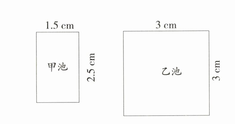 甲池:$1.5\div\frac{1}{1000}=1500$(cm) 1500 cm = 15 m
