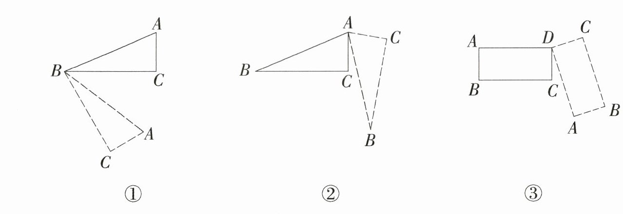 2. 图形①是以点( )为中心旋转的;图形②是以点( )为中心旋转的;图形③是以点( )为中心旋转的。