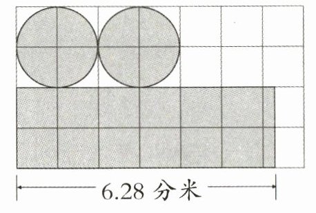 3. 如图(每个方格的边长为 1 分米),用一块长方形铁皮做一个圆柱形罐子,剪下图中的阴影部分可以围成一个圆柱,将它竖直放在桌子上。(铁皮厚度及接缝处忽略不计)