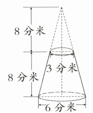 5. 学校科研小组制作了一个模型(如图),它的下底面直径是 6 分米,上底面直径是 3 分米,高是 8 分米,这个模型的体积是多少立方分米?(5 分)