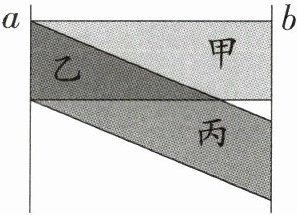 4. 如图,在 a,b 两条平行线间,甲的面积是 16 $cm^{2}$,乙的面积是 11 $cm^{2}$,丙的面积是( )$cm^{2}$。