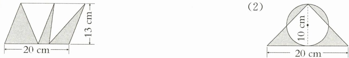 $13×20÷2 = 130(cm^{2})$@@$20×(10÷2)÷2 = 50(cm^{2})$@@
