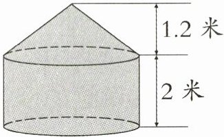 4. 一个装满稻谷的粮囤,上面是圆锥形,下面是圆柱形(如图)。量得圆柱底面的周长是 62.8 米,高是 2 米,圆锥的高是 1.2 米。