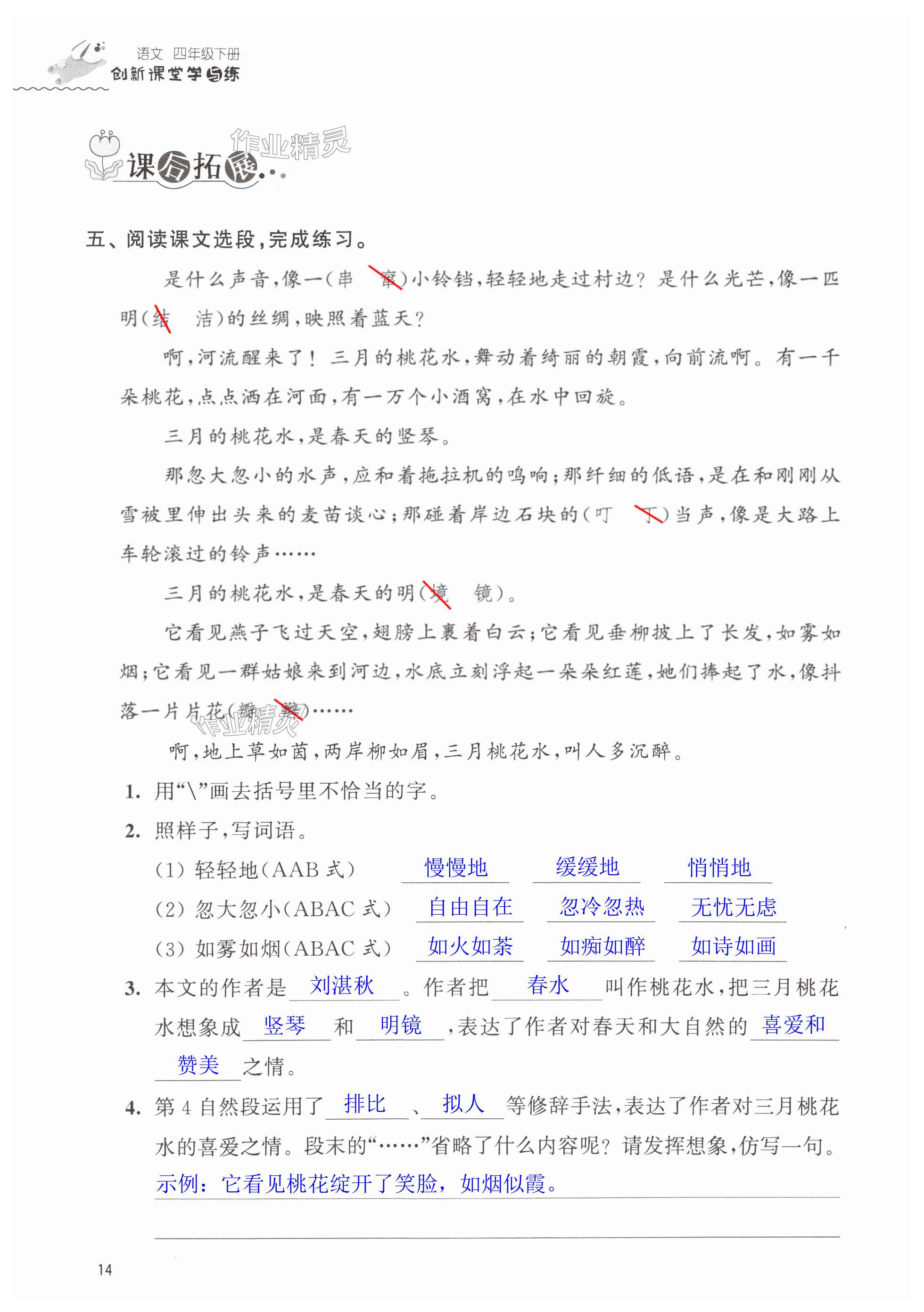 注:目前有些书本章节名称可能整理的还不是很完善,但都是按照顺序排列的,请同学们按照顺序仔细查找。练习册 2025年创新课堂学与练四年级语文下册人教版 答案主要是用来给同学们做完题方便对答案用的,请勿直接抄袭。