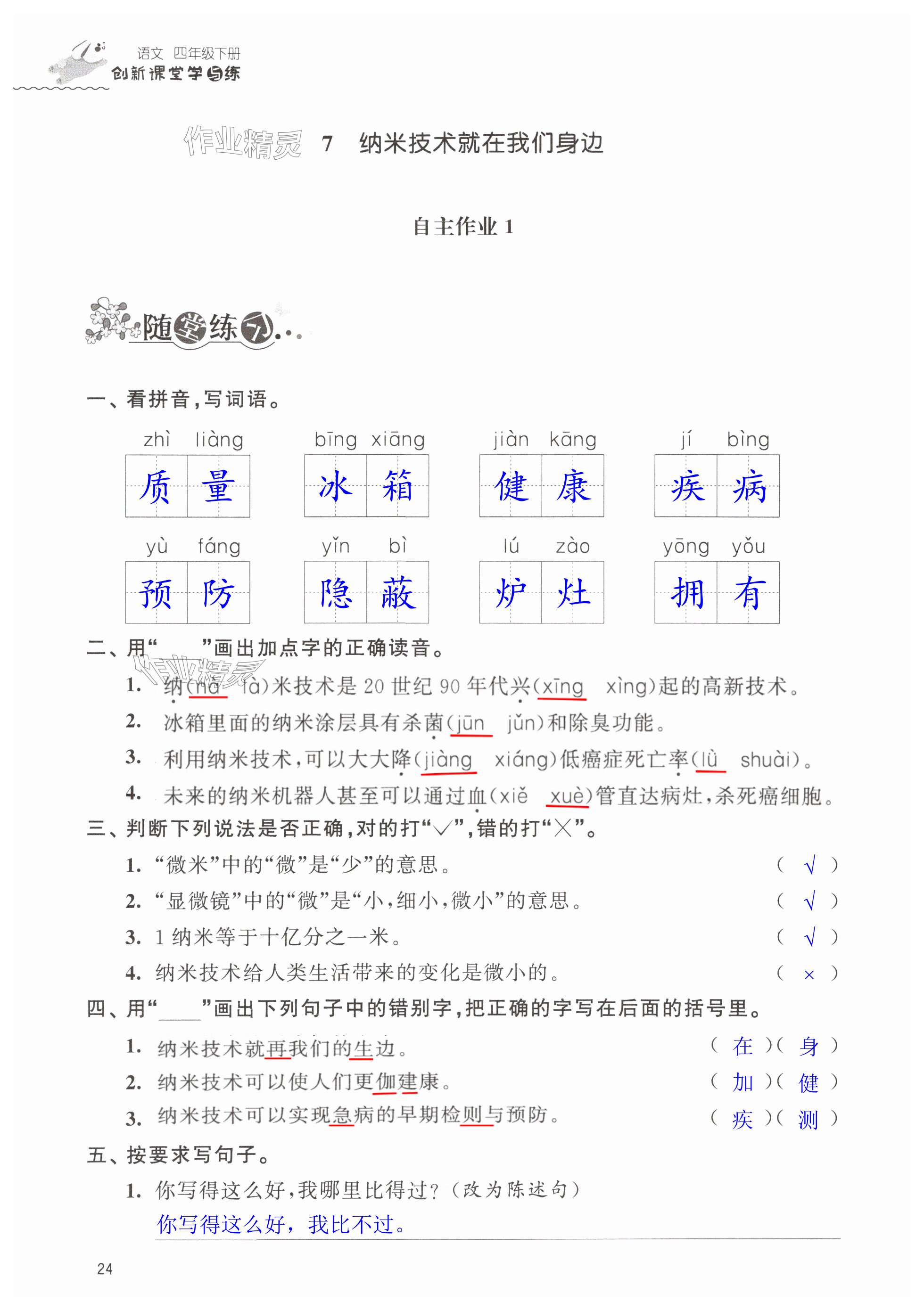 注:目前有些书本章节名称可能整理的还不是很完善,但都是按照顺序排列的,请同学们按照顺序仔细查找。练习册 2025年创新课堂学与练四年级语文下册人教版 答案主要是用来给同学们做完题方便对答案用的,请勿直接抄袭。