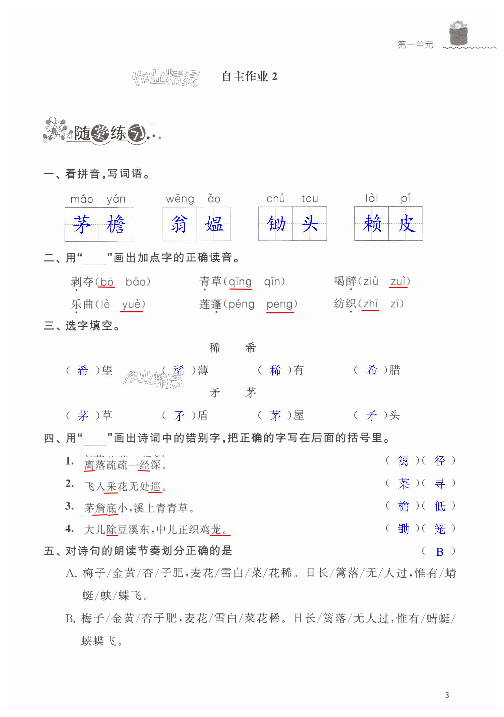 注:目前有些书本章节名称可能整理的还不是很完善,但都是按照顺序排列的,请同学们按照顺序仔细查找。练习册 2025年创新课堂学与练四年级语文下册人教版 答案主要是用来给同学们做完题方便对答案用的,请勿直接抄袭。