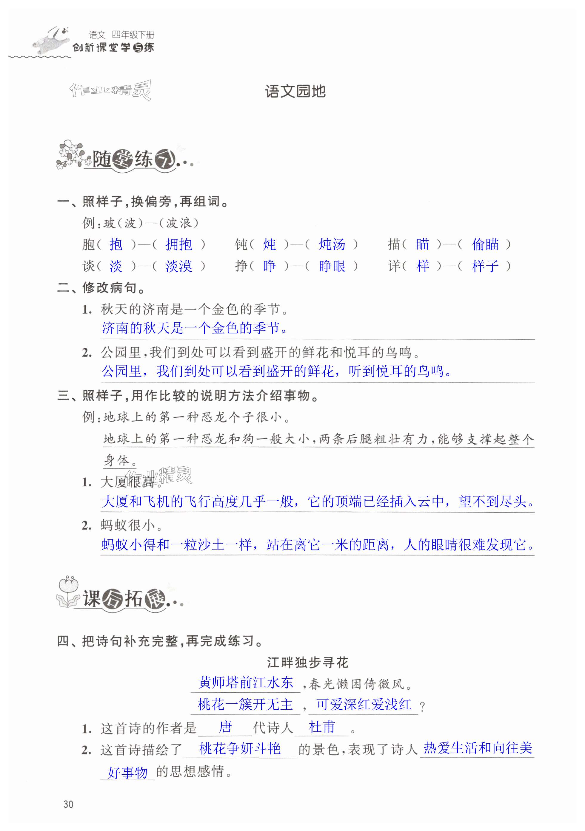 注:目前有些书本章节名称可能整理的还不是很完善,但都是按照顺序排列的,请同学们按照顺序仔细查找。练习册 2025年创新课堂学与练四年级语文下册人教版 答案主要是用来给同学们做完题方便对答案用的,请勿直接抄袭。