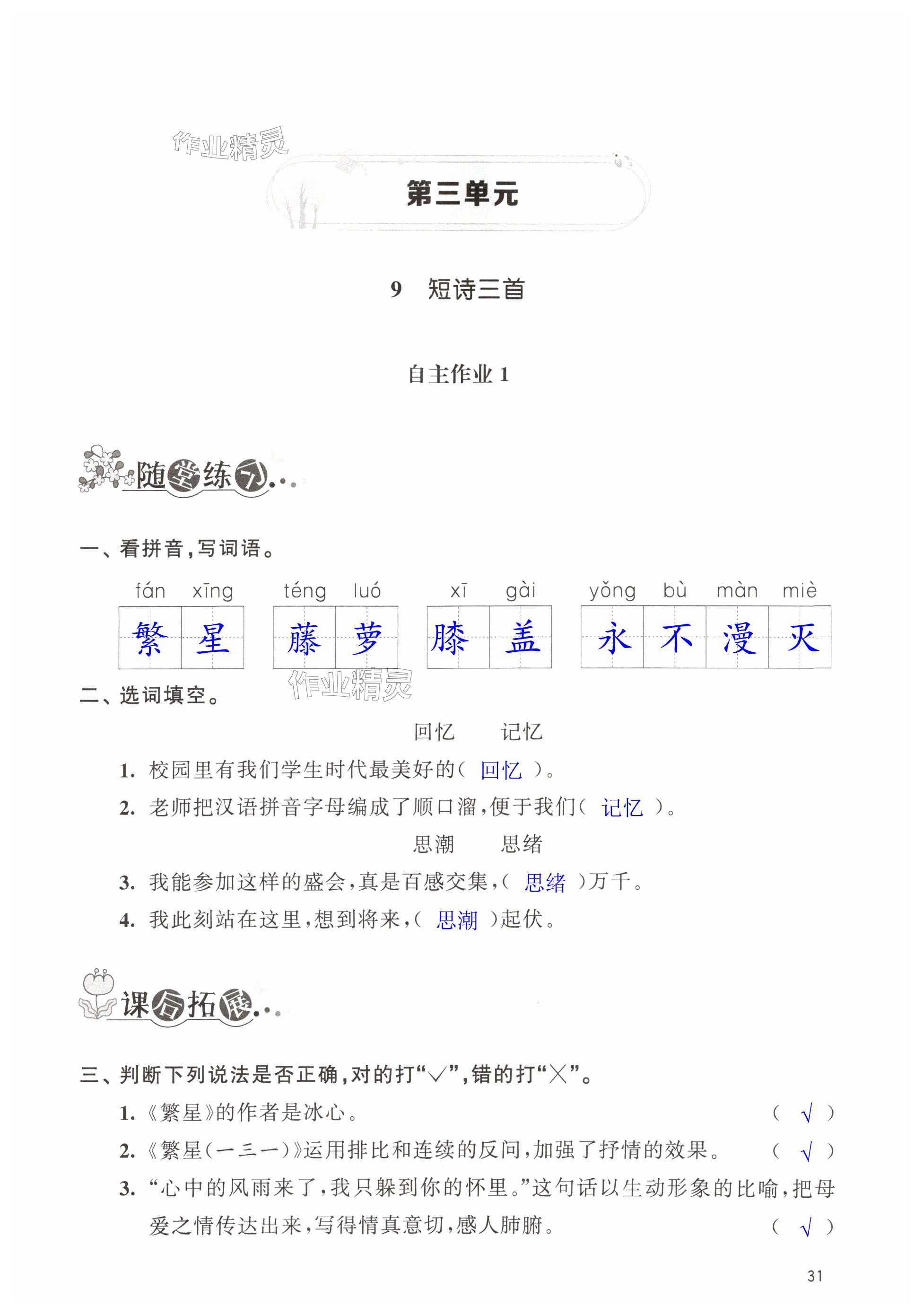 注:目前有些书本章节名称可能整理的还不是很完善,但都是按照顺序排列的,请同学们按照顺序仔细查找。练习册 2025年创新课堂学与练四年级语文下册人教版 答案主要是用来给同学们做完题方便对答案用的,请勿直接抄袭。