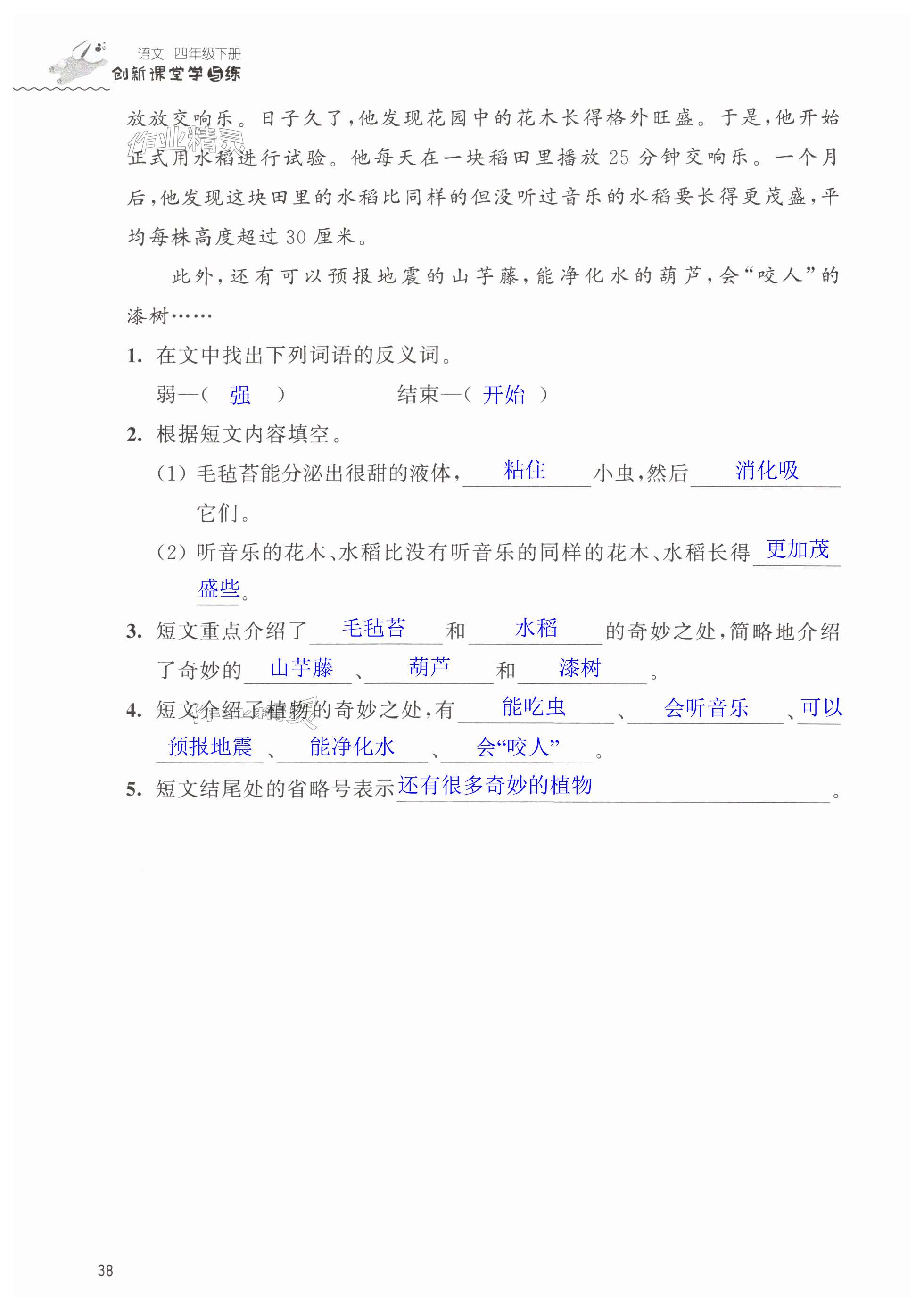 注:目前有些书本章节名称可能整理的还不是很完善,但都是按照顺序排列的,请同学们按照顺序仔细查找。练习册 2025年创新课堂学与练四年级语文下册人教版 答案主要是用来给同学们做完题方便对答案用的,请勿直接抄袭。