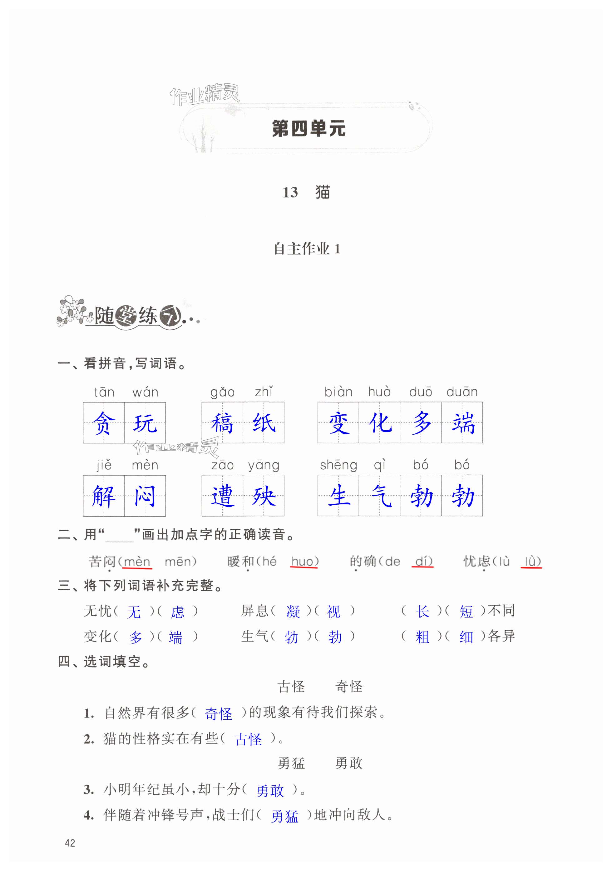 注:目前有些书本章节名称可能整理的还不是很完善,但都是按照顺序排列的,请同学们按照顺序仔细查找。练习册 2025年创新课堂学与练四年级语文下册人教版 答案主要是用来给同学们做完题方便对答案用的,请勿直接抄袭。