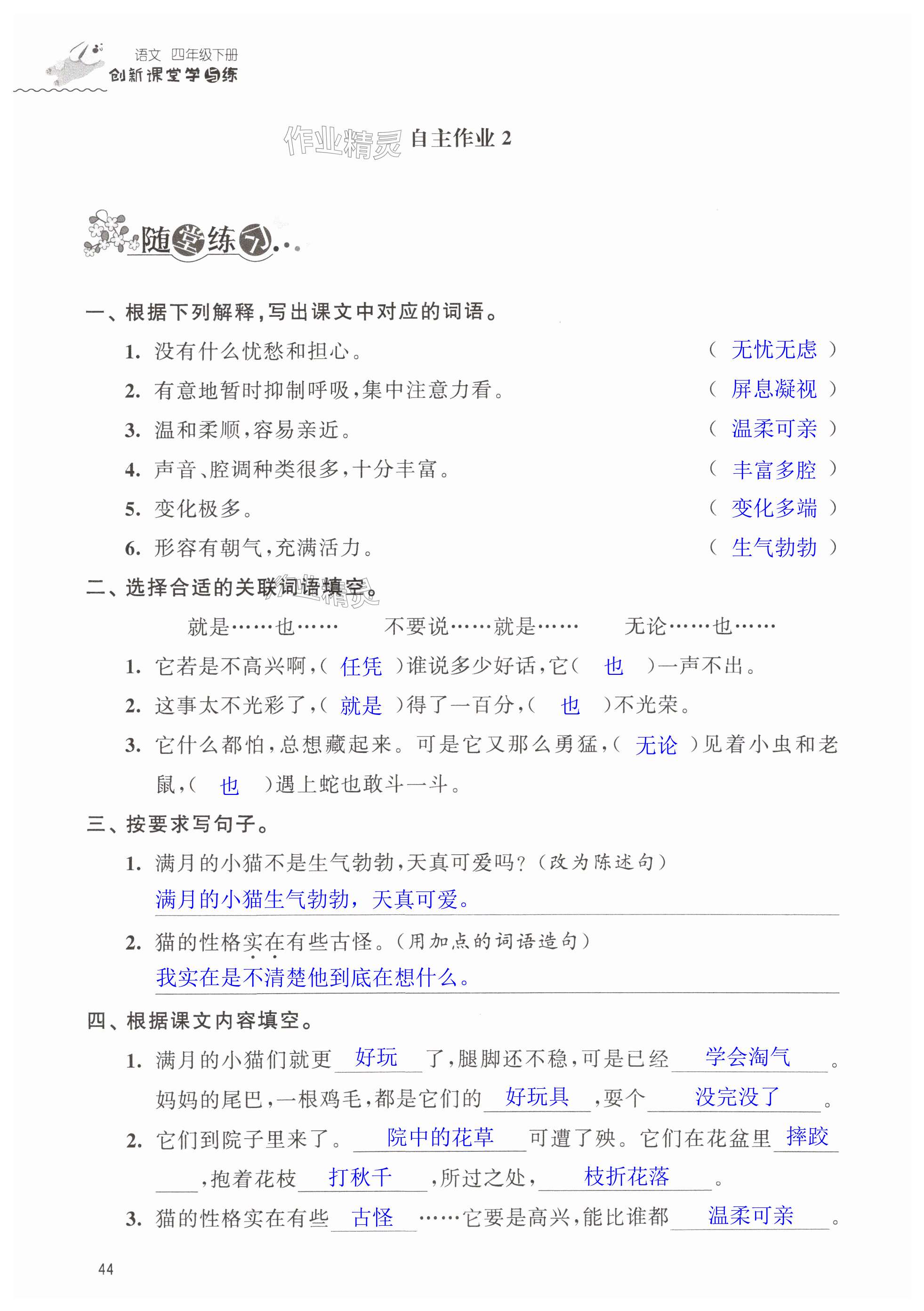 注:目前有些书本章节名称可能整理的还不是很完善,但都是按照顺序排列的,请同学们按照顺序仔细查找。练习册 2025年创新课堂学与练四年级语文下册人教版 答案主要是用来给同学们做完题方便对答案用的,请勿直接抄袭。