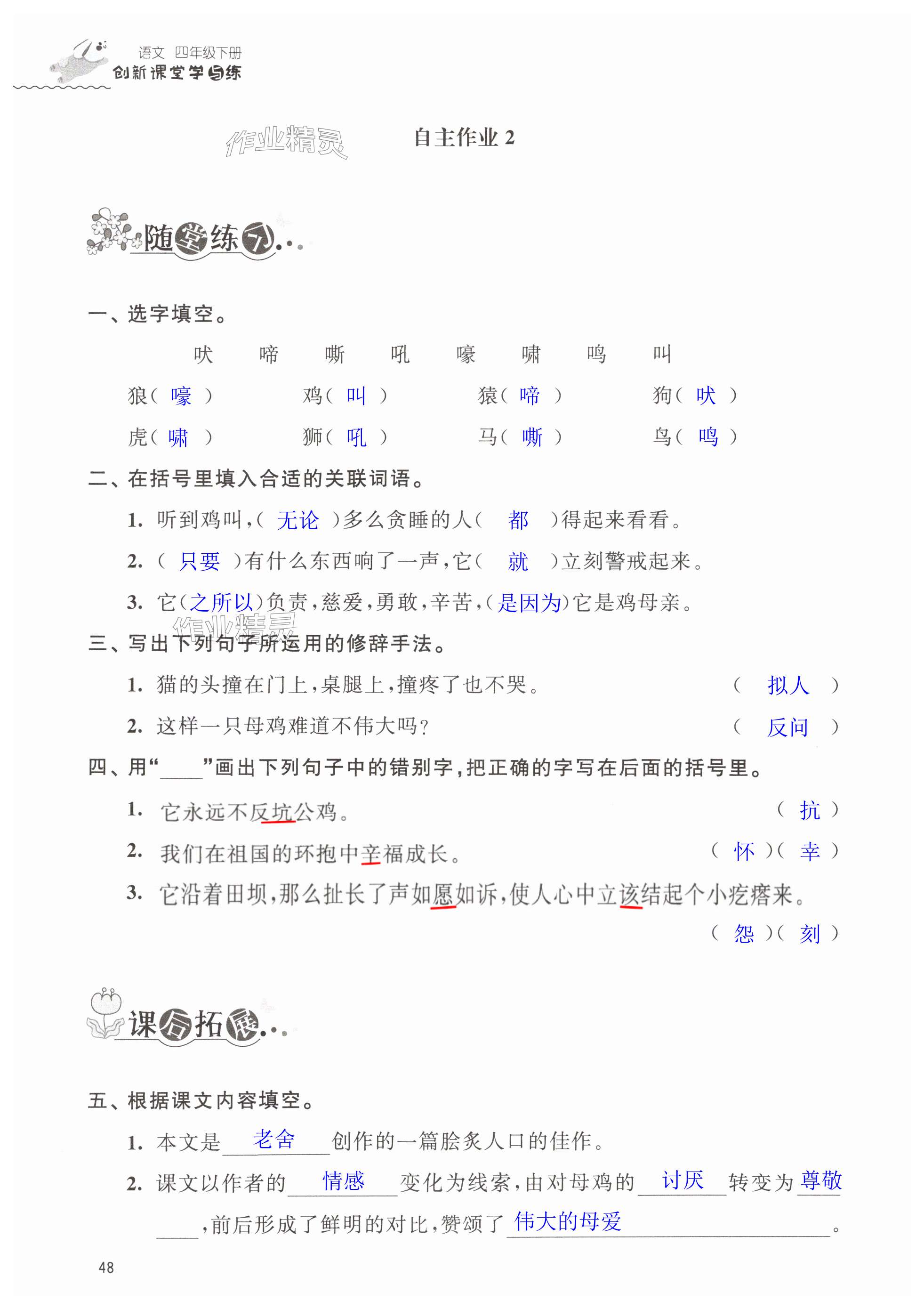 注:目前有些书本章节名称可能整理的还不是很完善,但都是按照顺序排列的,请同学们按照顺序仔细查找。练习册 2025年创新课堂学与练四年级语文下册人教版 答案主要是用来给同学们做完题方便对答案用的,请勿直接抄袭。