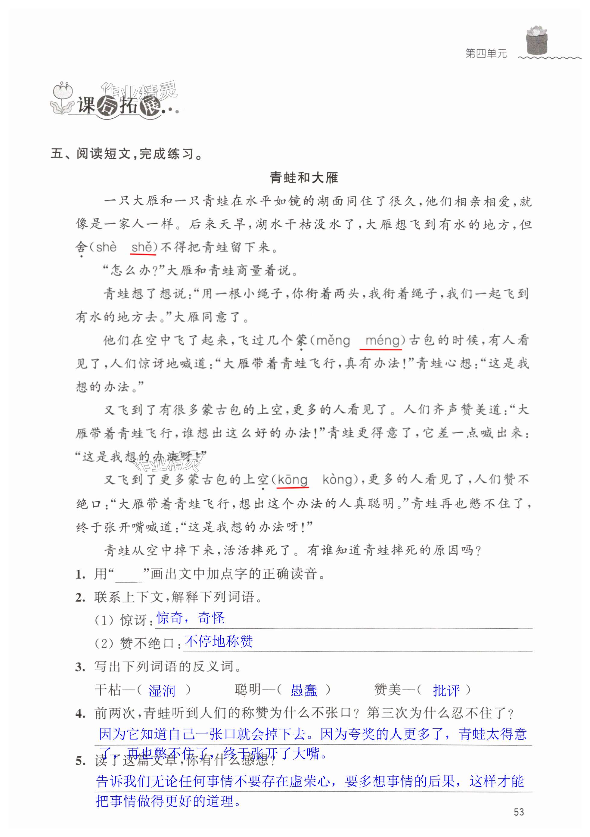 注:目前有些书本章节名称可能整理的还不是很完善,但都是按照顺序排列的,请同学们按照顺序仔细查找。练习册 2025年创新课堂学与练四年级语文下册人教版 答案主要是用来给同学们做完题方便对答案用的,请勿直接抄袭。