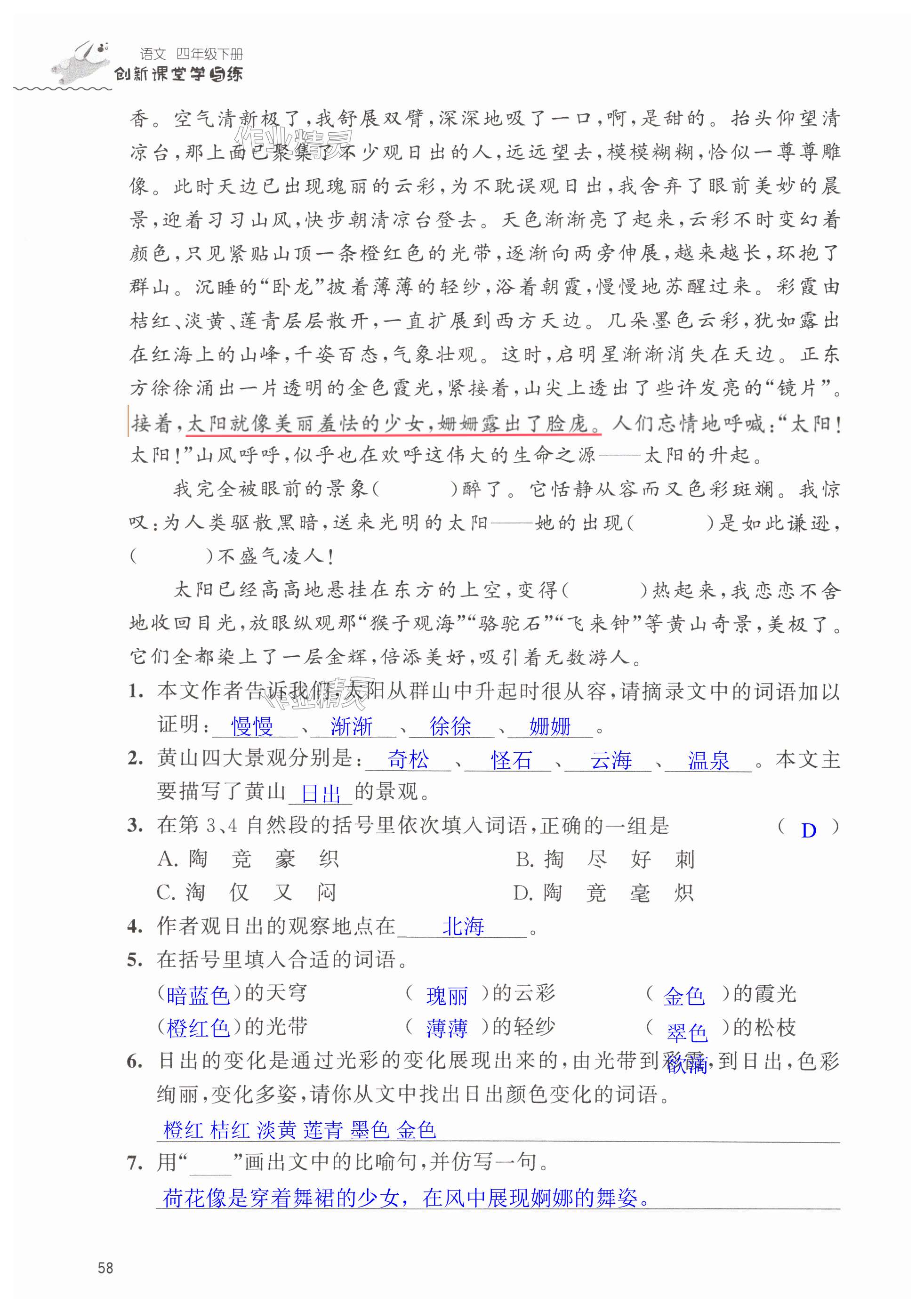 注:目前有些书本章节名称可能整理的还不是很完善,但都是按照顺序排列的,请同学们按照顺序仔细查找。练习册 2025年创新课堂学与练四年级语文下册人教版 答案主要是用来给同学们做完题方便对答案用的,请勿直接抄袭。