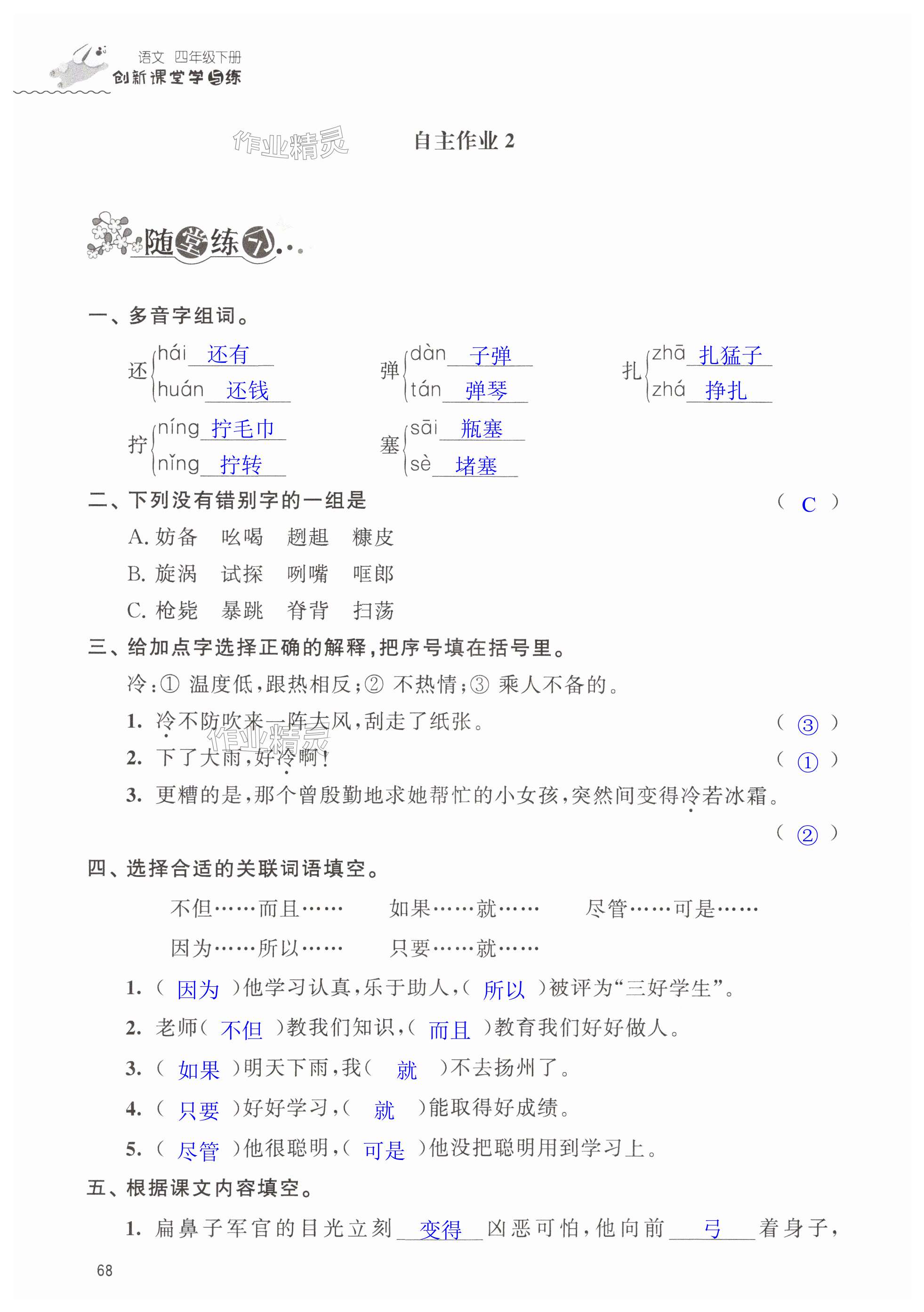 注:目前有些书本章节名称可能整理的还不是很完善,但都是按照顺序排列的,请同学们按照顺序仔细查找。练习册 2025年创新课堂学与练四年级语文下册人教版 答案主要是用来给同学们做完题方便对答案用的,请勿直接抄袭。
