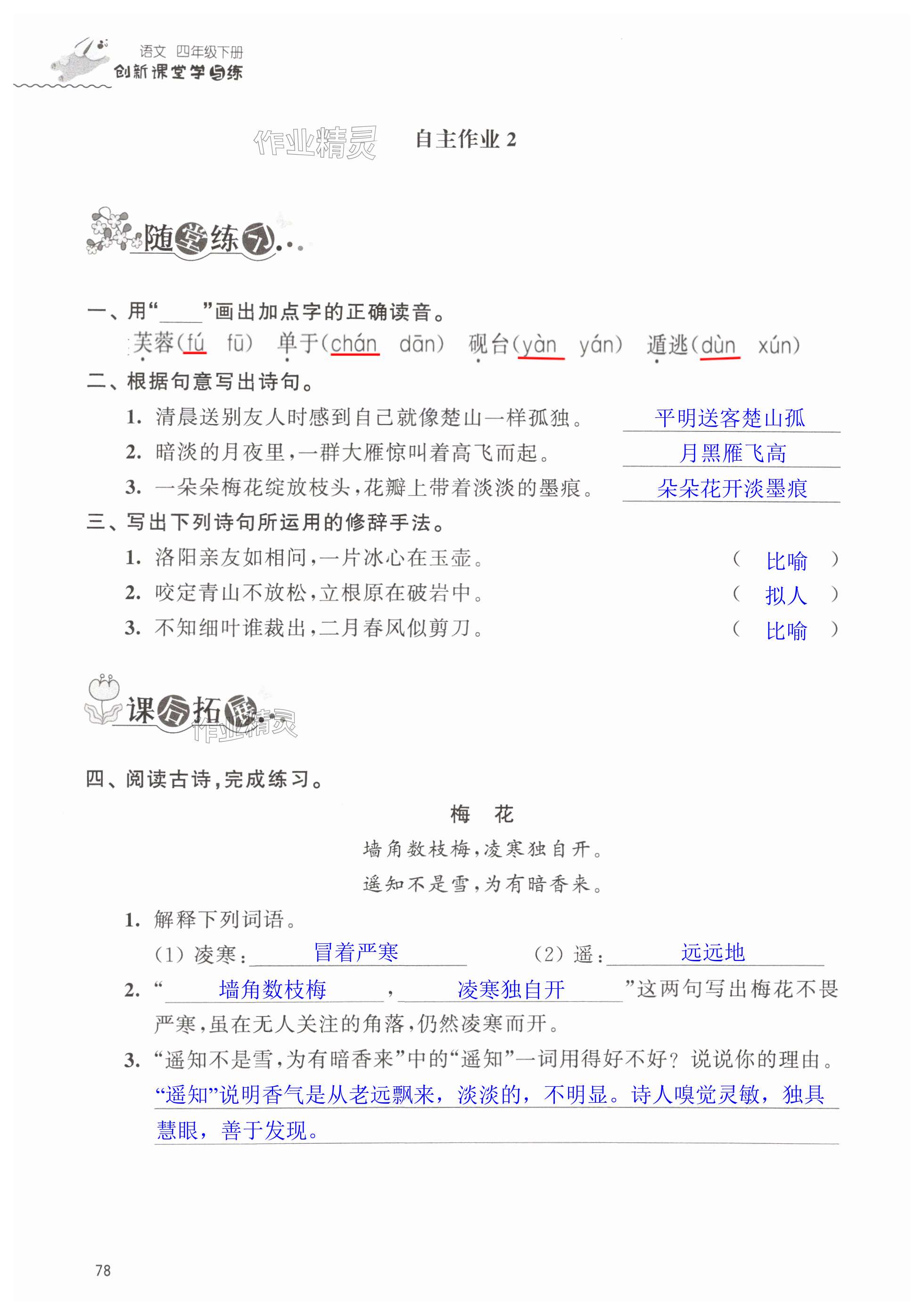 注:目前有些书本章节名称可能整理的还不是很完善,但都是按照顺序排列的,请同学们按照顺序仔细查找。练习册 2025年创新课堂学与练四年级语文下册人教版 答案主要是用来给同学们做完题方便对答案用的,请勿直接抄袭。