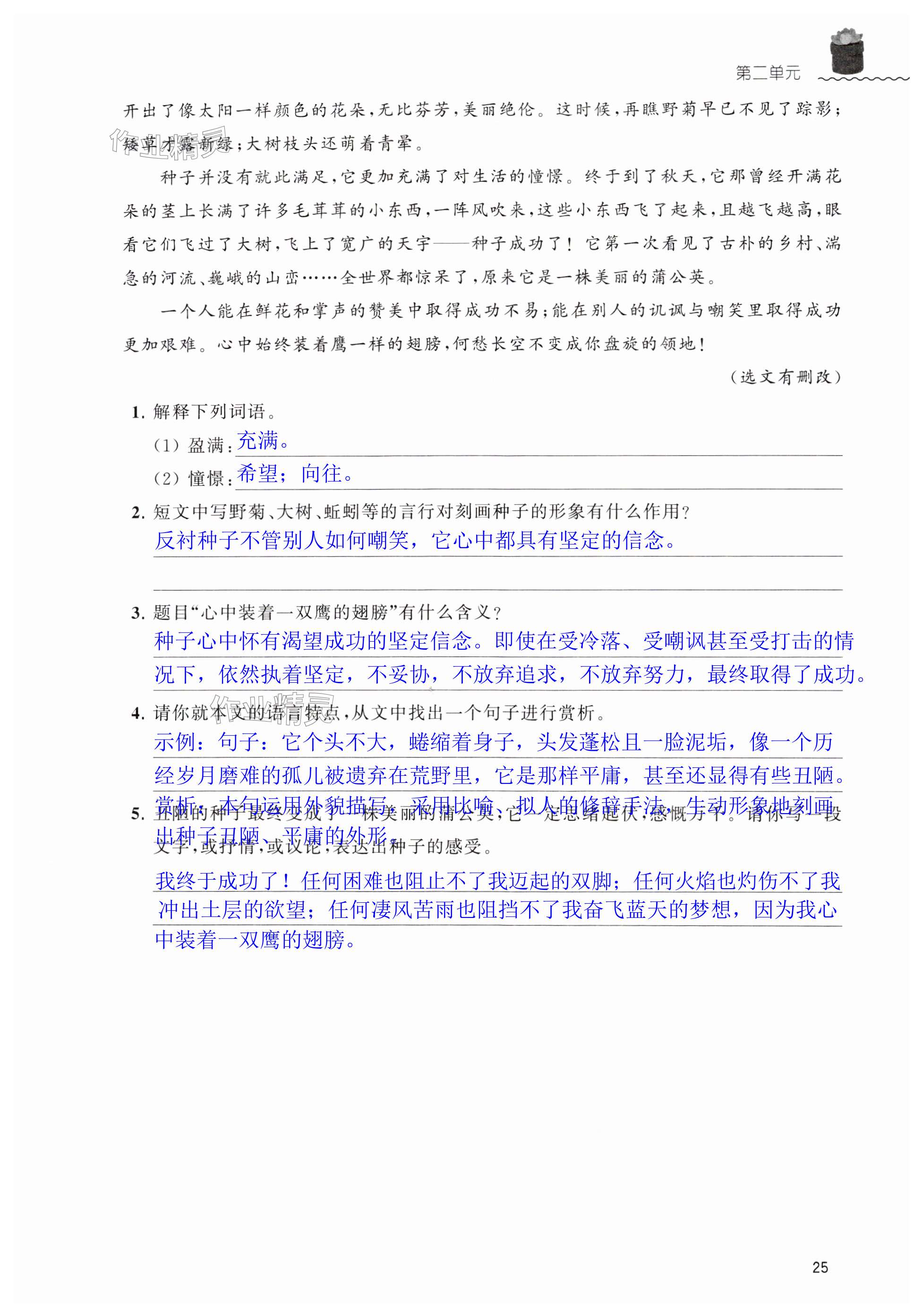 注:目前有些书本章节名称可能整理的还不是很完善,但都是按照顺序排列的,请同学们按照顺序仔细查找。练习册 2025年创新课堂学与练六年级语文下册人教版 答案主要是用来给同学们做完题方便对答案用的,请勿直接抄袭。