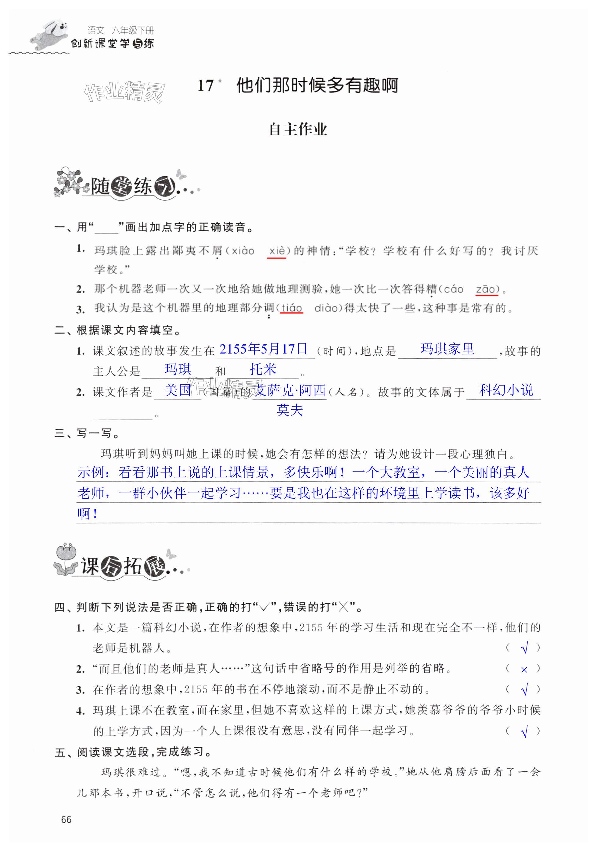 注:目前有些书本章节名称可能整理的还不是很完善,但都是按照顺序排列的,请同学们按照顺序仔细查找。练习册 2025年创新课堂学与练六年级语文下册人教版 答案主要是用来给同学们做完题方便对答案用的,请勿直接抄袭。