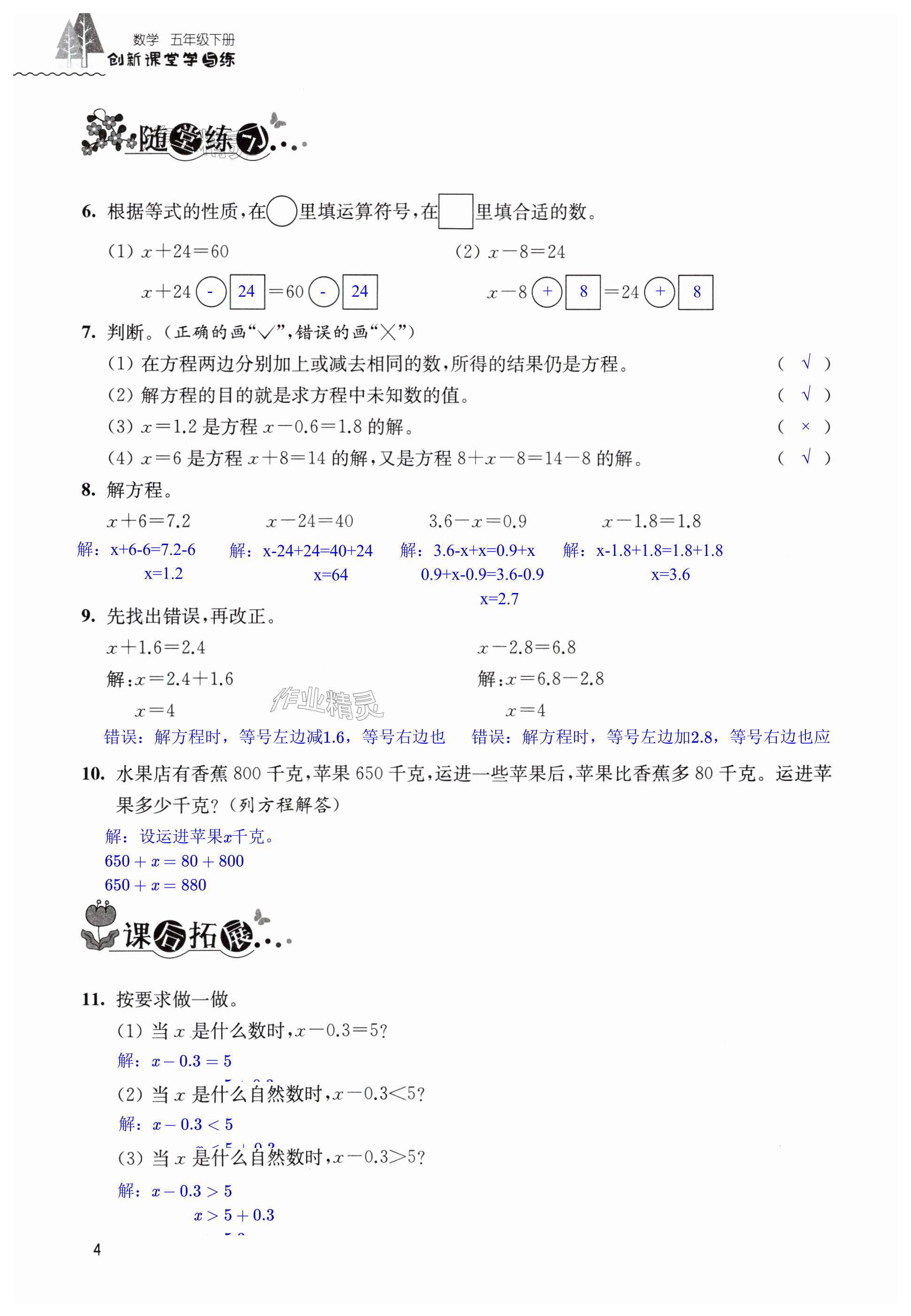注:目前有些书本章节名称可能整理的还不是很完善,但都是按照顺序排列的,请同学们按照顺序仔细查找。练习册 2025年创新课堂学与练五年级数学下册苏教版 答案主要是用来给同学们做完题方便对答案用的,请勿直接抄袭。