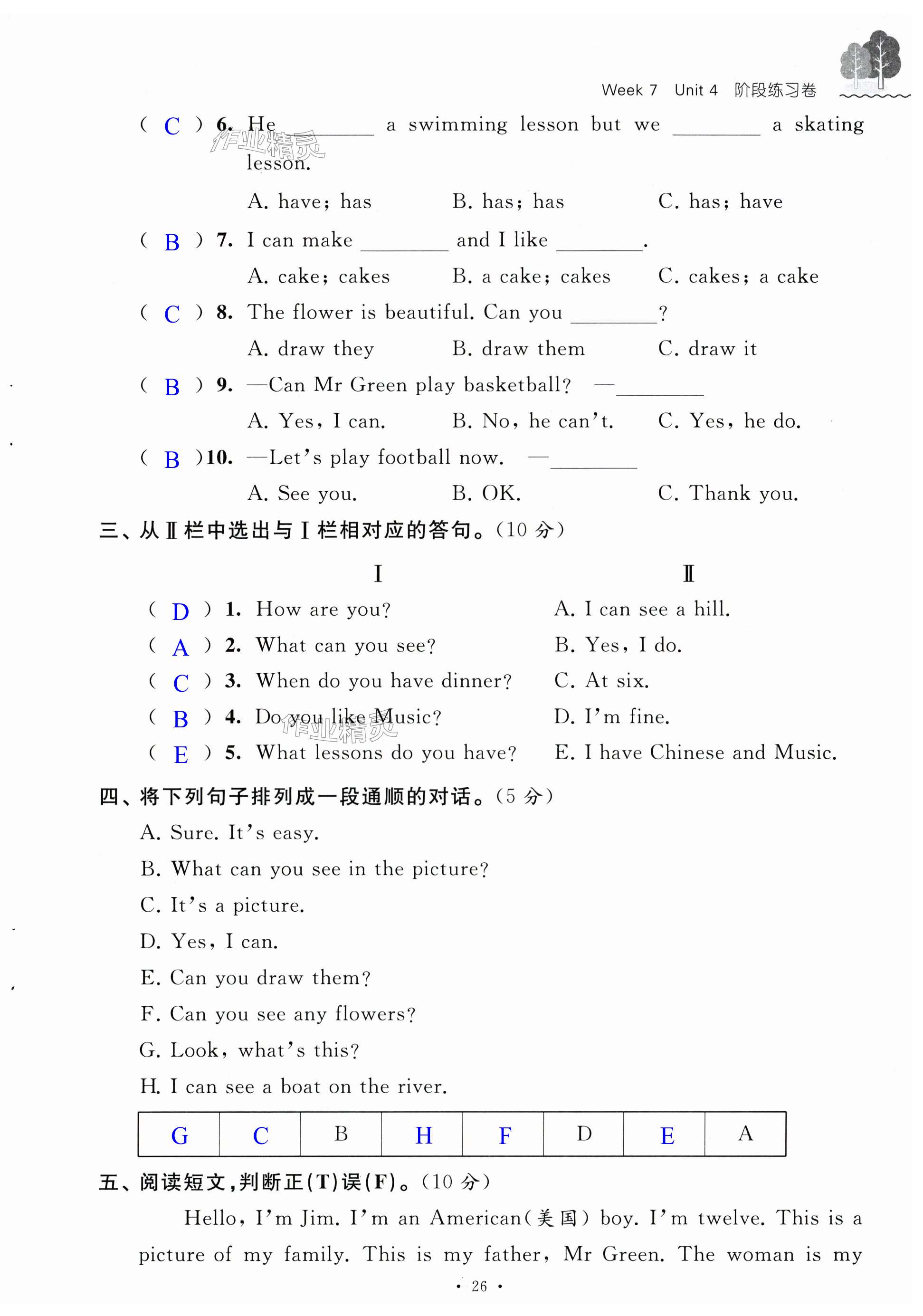 注:目前有些书本章节名称可能整理的还不是很完善,但都是按照顺序排列的,请同学们按照顺序仔细查找。练习册 2025年创新课堂学与练四年级英语下册译林版 答案主要是用来给同学们做完题方便对答案用的,请勿直接抄袭。