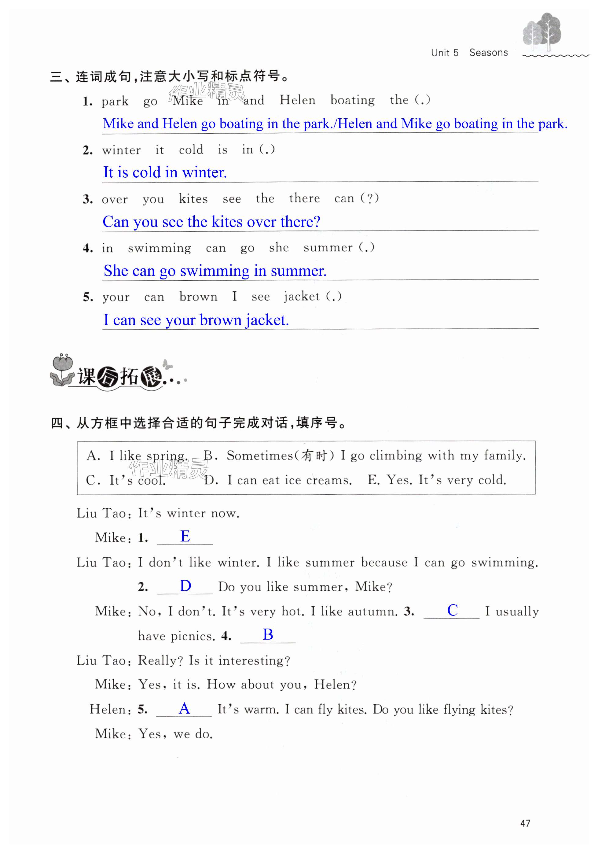 注:目前有些书本章节名称可能整理的还不是很完善,但都是按照顺序排列的,请同学们按照顺序仔细查找。练习册 2025年创新课堂学与练四年级英语下册译林版 答案主要是用来给同学们做完题方便对答案用的,请勿直接抄袭。