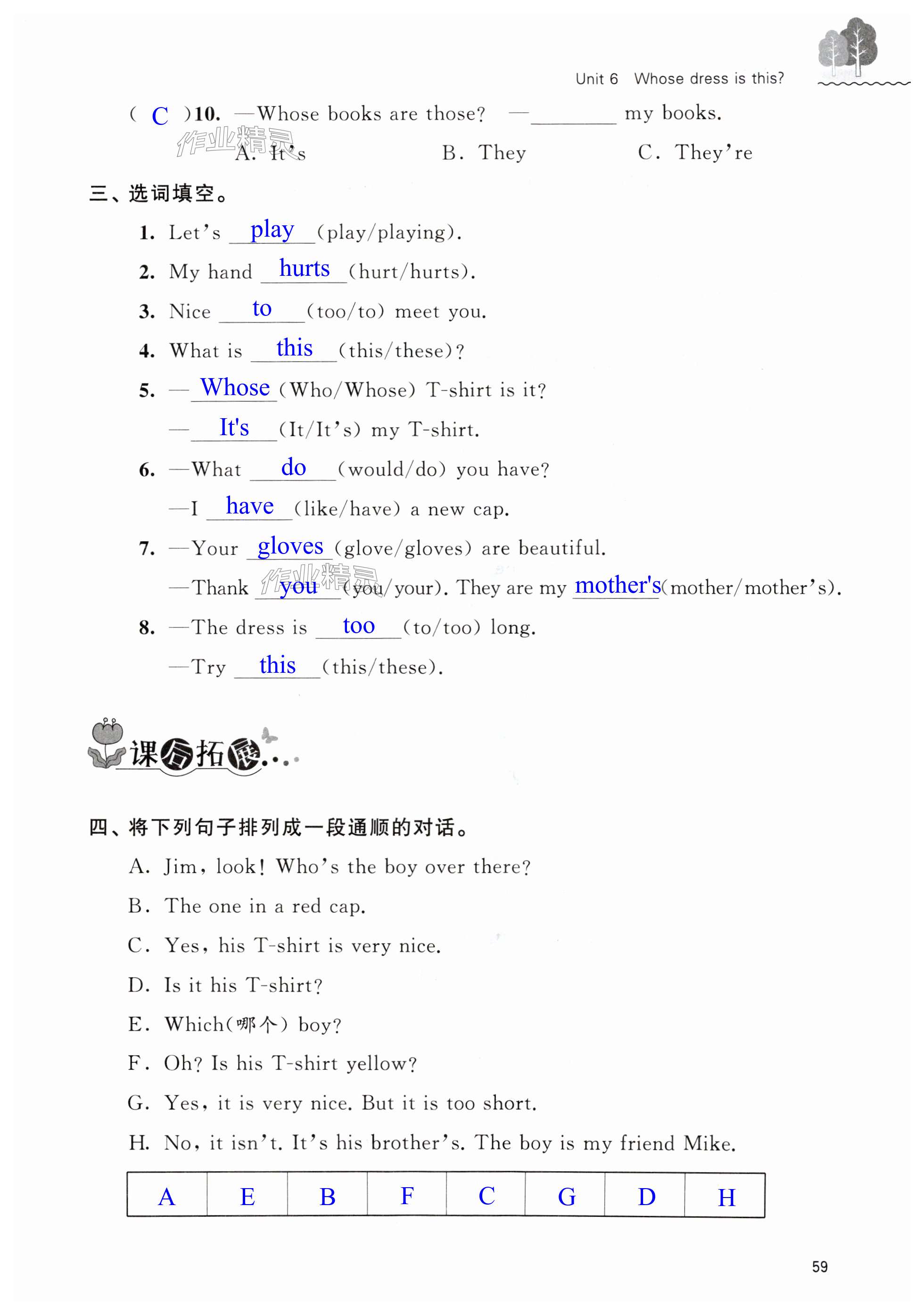 注:目前有些书本章节名称可能整理的还不是很完善,但都是按照顺序排列的,请同学们按照顺序仔细查找。练习册 2025年创新课堂学与练四年级英语下册译林版 答案主要是用来给同学们做完题方便对答案用的,请勿直接抄袭。