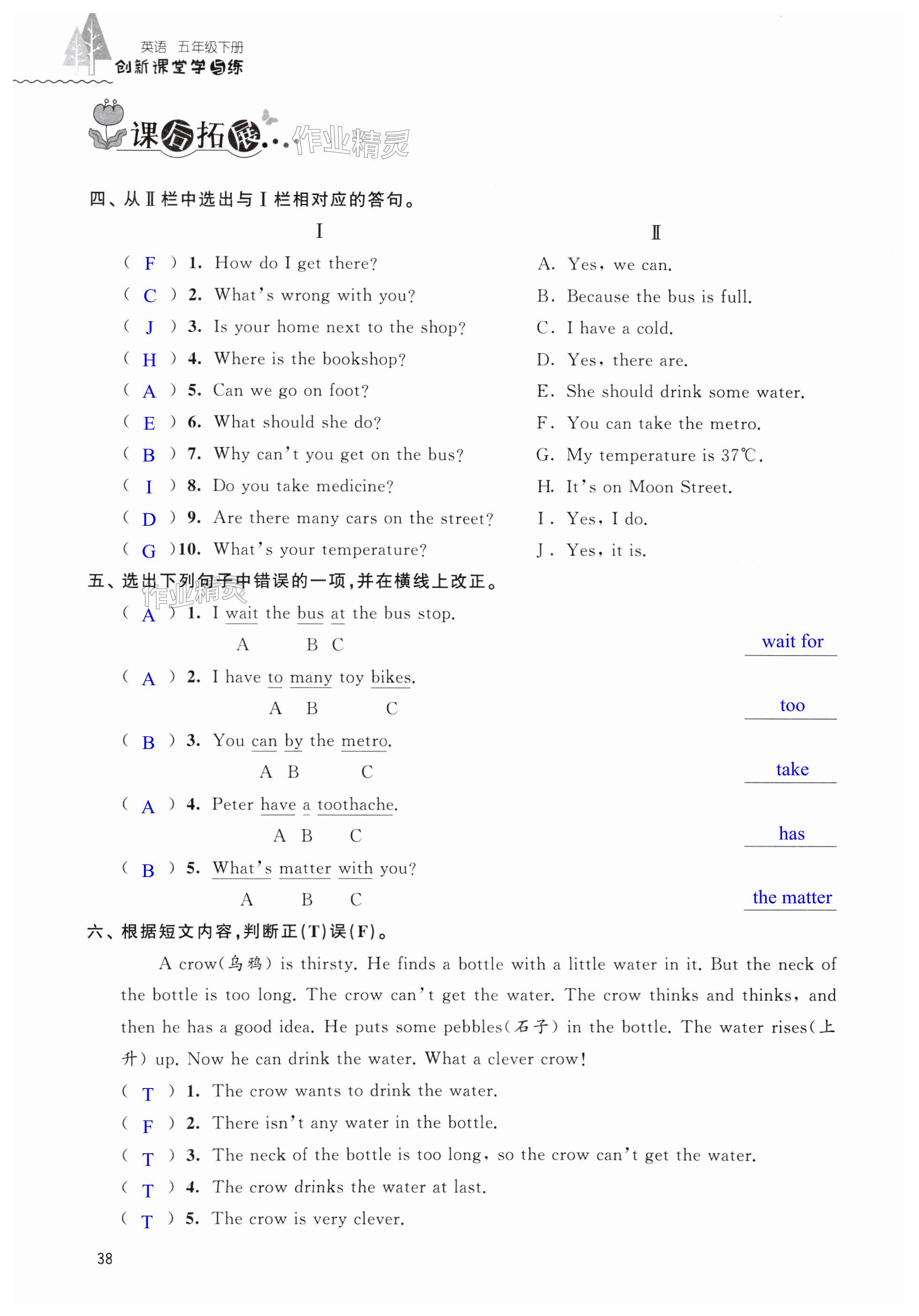 注:目前有些书本章节名称可能整理的还不是很完善,但都是按照顺序排列的,请同学们按照顺序仔细查找。练习册 2025年创新课堂学与练五年级英语下册译林版 答案主要是用来给同学们做完题方便对答案用的,请勿直接抄袭。