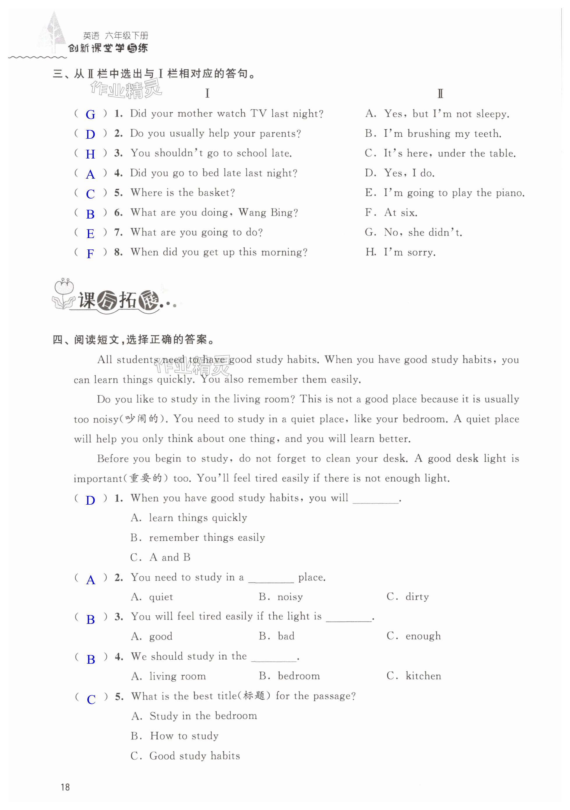 注:目前有些书本章节名称可能整理的还不是很完善,但都是按照顺序排列的,请同学们按照顺序仔细查找。练习册 2025年创新课堂学与练六年级英语下册译林版 答案主要是用来给同学们做完题方便对答案用的,请勿直接抄袭。