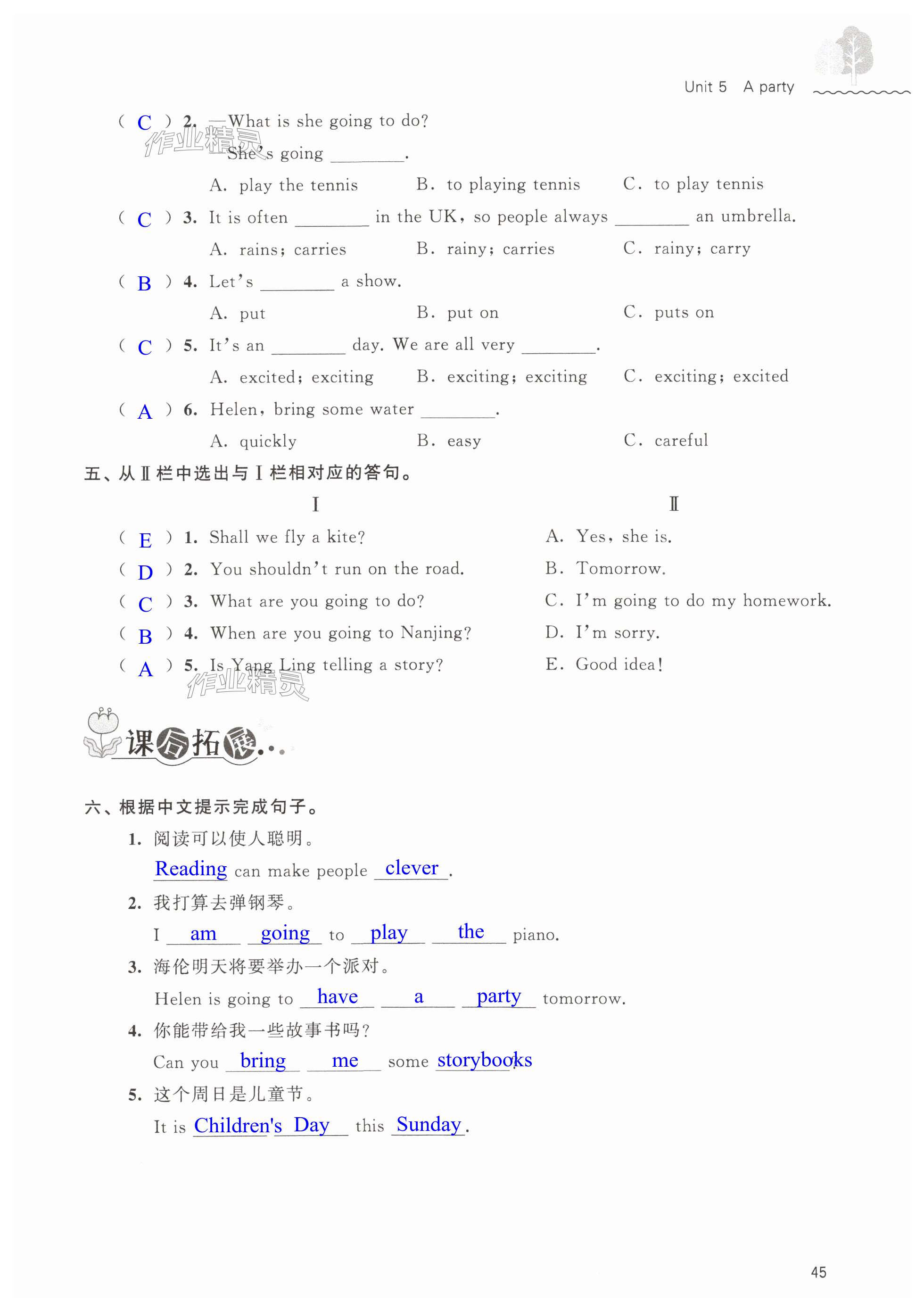 注:目前有些书本章节名称可能整理的还不是很完善,但都是按照顺序排列的,请同学们按照顺序仔细查找。练习册 2025年创新课堂学与练六年级英语下册译林版 答案主要是用来给同学们做完题方便对答案用的,请勿直接抄袭。