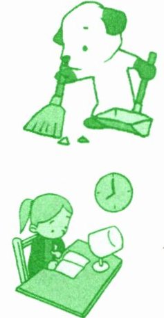 ( ) 3. A. I close the door and sweep the floor.