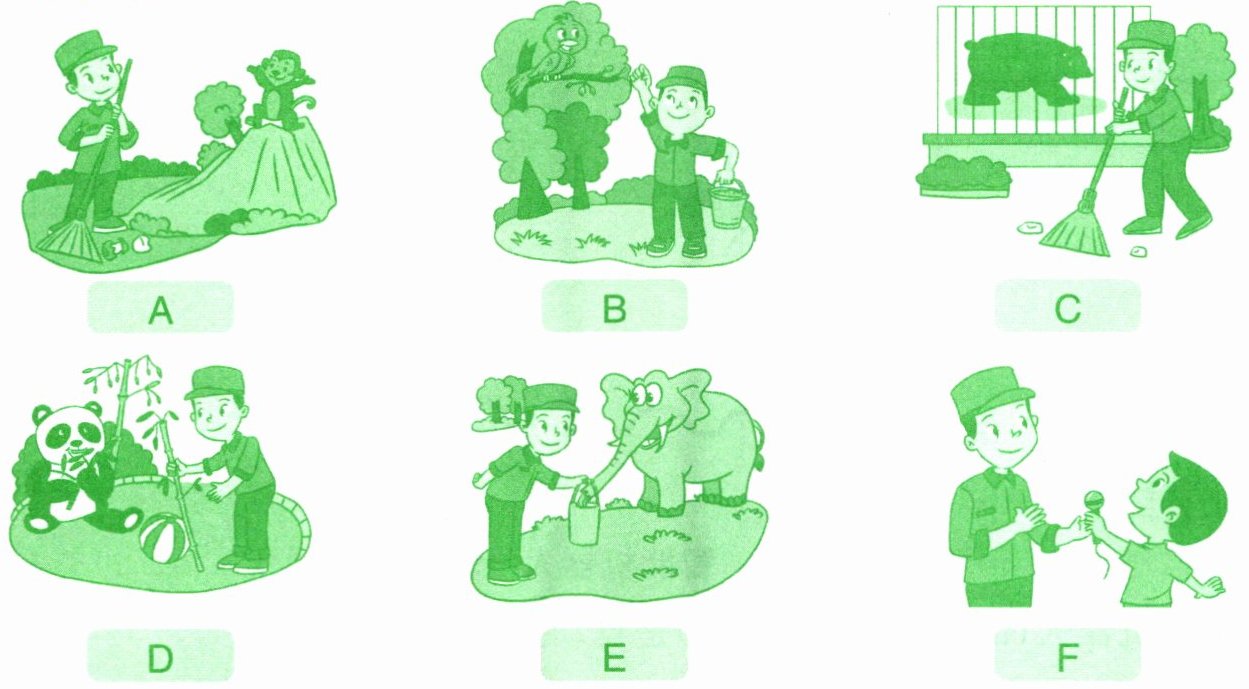 ( ) 6. He cleans the monkey’s hill at 9:00 am.