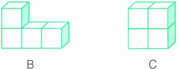 1. 用 4 个同样大小的正方体分别搭成下面的立体图形。