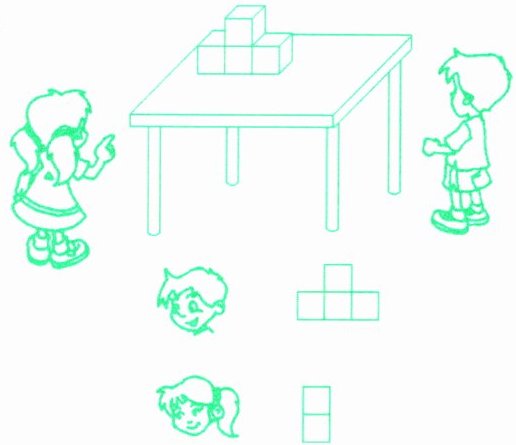 2. 搭一搭。请你根据从上面和正面看到的形状判断哪个搭得对,对的画“√”。