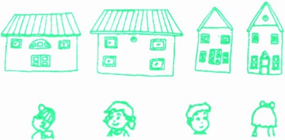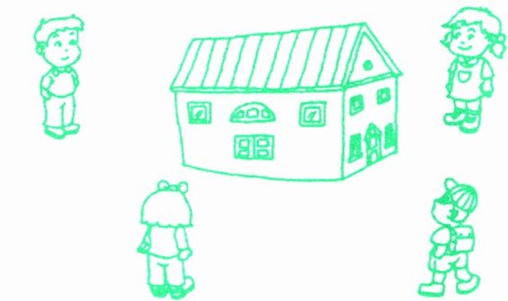 3. 画一画。下面的立体图形从不同方向看,分别是什么形状?
