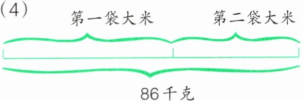 - 第一袋大米的质量 + 第二袋大米的质量 = 86 千克
