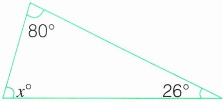 $x^{\circ}+ 80^{\circ}+ 26^{\circ}= 180^{\circ}$@@书包的单价×2 + 文具盒的单价 = 72元