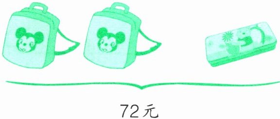 - 2 个书包的价格 + 一个文具盒的价格 = 72 元